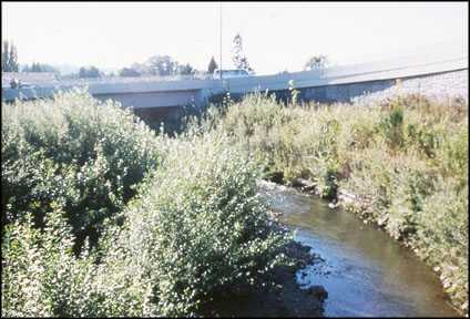 Johnson Creek is located in a highly urbanized area of Portland, Oregon metropolitan area, with land uses ranging from heavy industry to low-density residential. It is a third-order stream with a 100-year discharge at the project site of about 4,400 cfs. Flood control efforts during the 1930's enlarged, but did not straighten the stream. A survey of Johnson Creek revealed that with few exceptions, streambanks are stable, heavily vegetated, and provide excellent riparian habitat and overhanging cover for the stream.