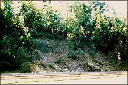 Figure 1 Overall view of project from the west-bound lane (Sept. 1994), prior to slope excavation and slope reconstruction
